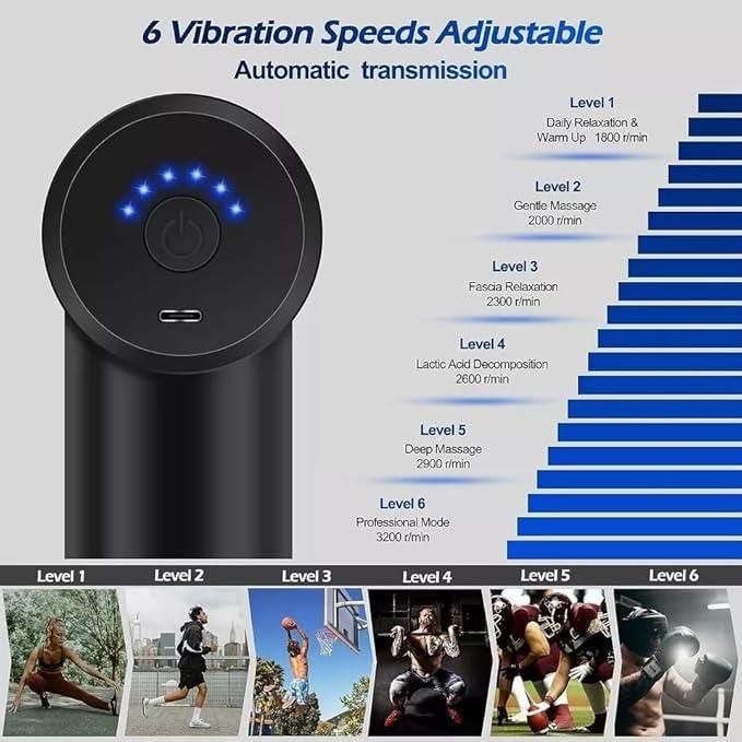 Deep Tissue Percussion Therapy: High-speed vibrations target sore muscles, reduce stiffness, and relieve tension.
